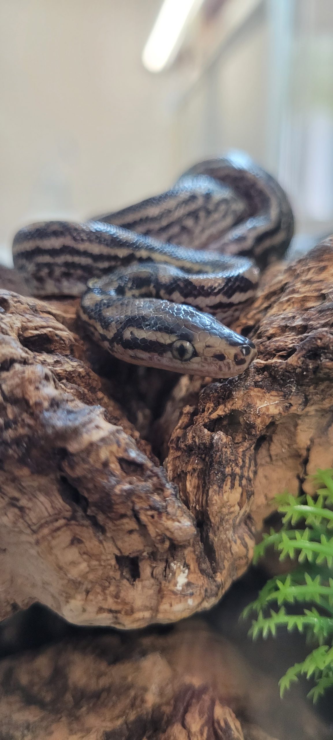 De kleine Guyana regenboogboa’s zijn in de babykamer van Iguana te bewonderen.